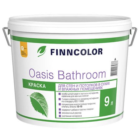 краска акриловая FINNCOLOR Oasis Bathroom для стен и потолков база A 9л белая, арт.700009649