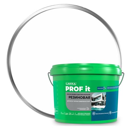 краска акриловая ЛАКРА Prof it резиновая для всех типов поверхностей белая 3кг, арт.9591029
