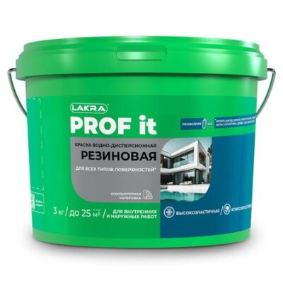 краска акриловая ЛАКРА Prof it резиновая для всех типов поверхностей бесцветная 3кг, арт.9591032