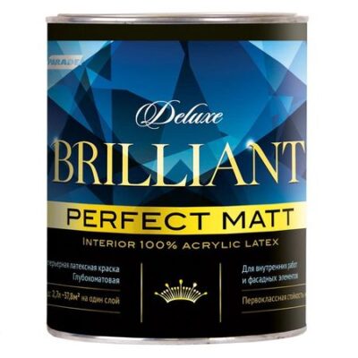Brilliant matt═база А 0,9 л Акриловая Цвет: Белый Глубокоматовый Для внутренних и наружних работ Точный расход зависит от особенностей основания и определяется пробным выкрашиванием на объекте