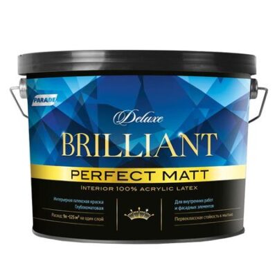 краска акриловая PARADE Deluxe brilliant perfect matt белая 9л, арт.0007392