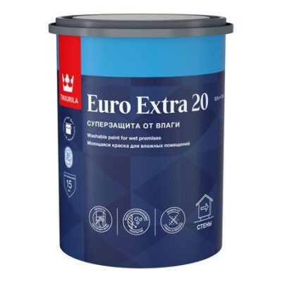 краска акриловая TIKKURILA Euro Extra 20 для стен и потолков база С 0,9л бесцветная, арт.700001108