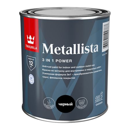 краска алкидная TIKKURILA Metallista по ржавчине 0,8л черная, арт.700014086