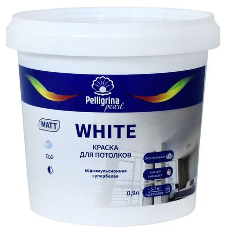 Краска для потолков Pelligrina Pearl White образует прочное матовое покрытие. Превосходная адгезия (сцепление) к бетонным, кирпичным, оштукатуренным, зашпатлеванным поверхностям, гипсокартону, гипсоволокно, ДСП, ДВП.