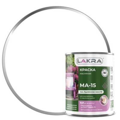 Главная » Строительство и ремонт краска масляная ЛАКРА МА-15 белая 0,9кг, арт.0007949 Просмотров 3 /МА-15/ 0,9кг,белый, д/металла,дерева,морозост. д/внутр.и наружных работ на основе льняного масла ЛАКРА