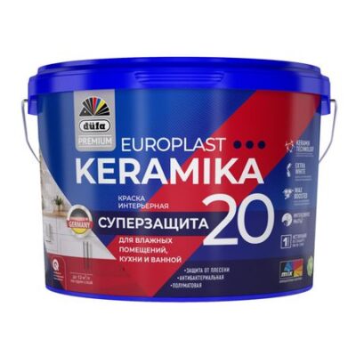 краска в/д DUFA Premium EuroPlast Keramika 20 база 1 для стен и потолков 2,5л белая, арт.МП00-006971