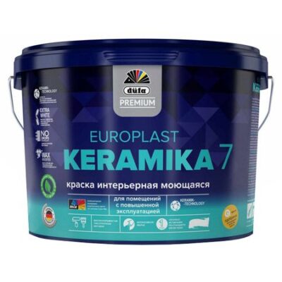 краска в/д DUFA Premium EuroPlast Keramika 7 база 1 для стен и потолков 9л белая, арт.МП00-006966