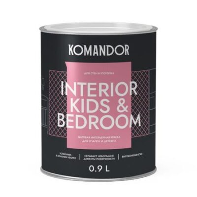 краска в/д KOMANDOR Interior Kids&Bedroom база А матовая интерьерная 0,9 л белая, арт.S1303001001