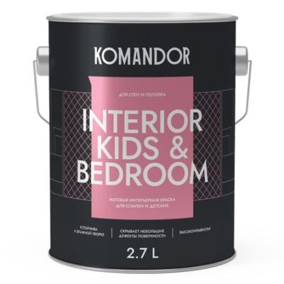 краска в/д KOMANDOR Interior Kids&Bedroom база А матовая интерьерная 2,7 л белая, арт.S1303001003