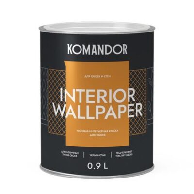краска в/д KOMANDOR Interior Wallpaper база А матовая для обоев 0,9 л белая, арт.S1306001001