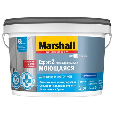 краска в/д MARSHALL Export 2 база BW для стен и потолков 2,5л белая, арт.5183677
