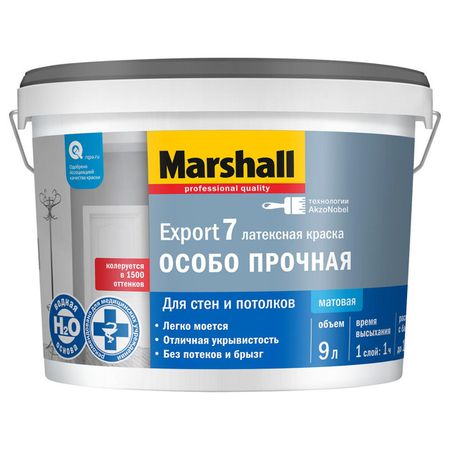 краска в/д MARSHALL Export 7 база BW для стен и потолков 9л белая, арт.5248848