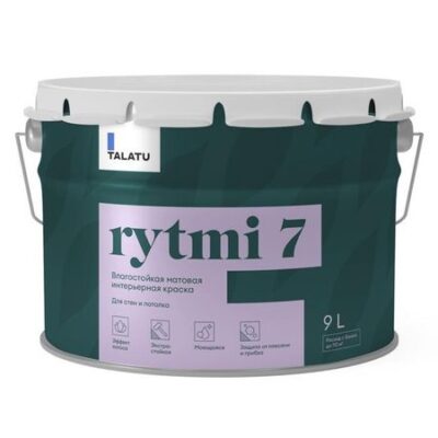 краска в/д TALATU Rytmi 7 База А влагостойкая матовая 9 л белая, арт.S1204001010