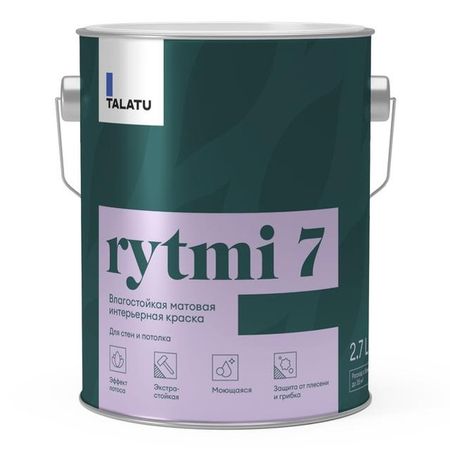 краска в/д TALATU Rytmi 7 База С влагостойкая матовая 2,7 л бесцветная, арт.S1204003003
