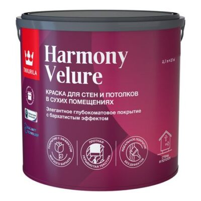 краска в/д TIKKURILA Harmony Velure для стен и потолков база С 2,7л бесцветная, арт.700014033