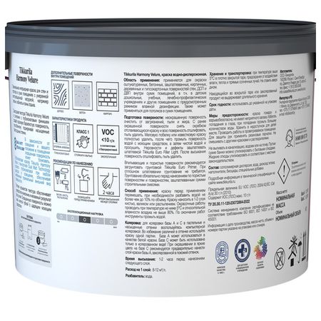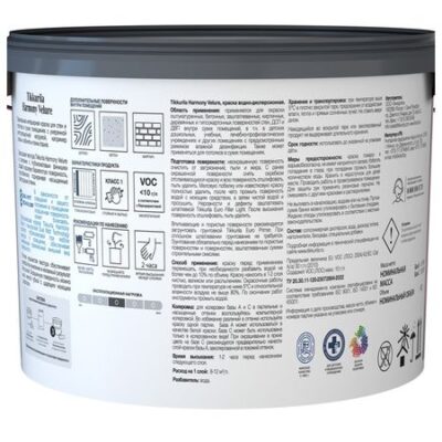 краска в/д TIKKURILA Harmony Velure для стен и потолков база С 9л бесцветная арт.700014034