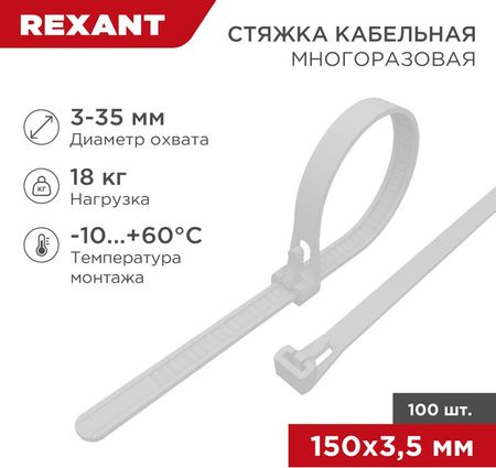Главная » Строительство и ремонт Крепеж проводов и кабелей REXANT Стяжкa нейлоновая многоразовая 150×3,5мм, белая (100 шт/уп) REXANT Просмотров 16 Широкий ассортимент по выгодным ценам. Регулярные акции. Программа лояльности REXANT