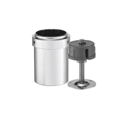 Используется в качестве крепежа для полых труб диаметром 50мм. Изделие предназначено для фиксации верхней части трубы к жесткой поверхности (потолку или полке). <br> Это крепление позволяет регулировать высоту на 5 см за счет колбы. Изготовлен из металла с гальваническим покрытием и пластика.
