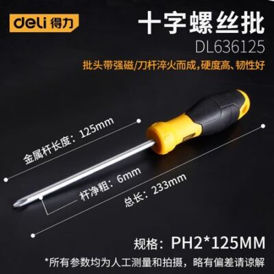 Крестовая бытовая отвертка Deli, многофункциональная противоскользящая отвертка с сильным магнитным удлинителем 6×125 ммDL636125
