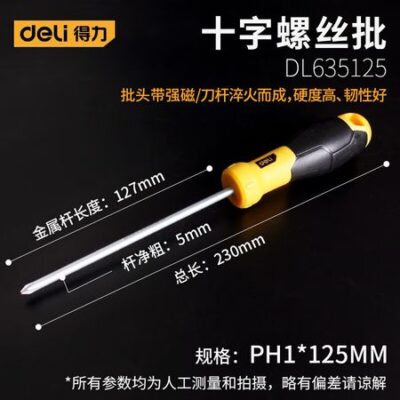 Крестовая бытовая отвертка Deli, противоскользящая отвертка, многофункциональная, с сильным магнитом, удлиненного типа, 5×125 ммDL635125