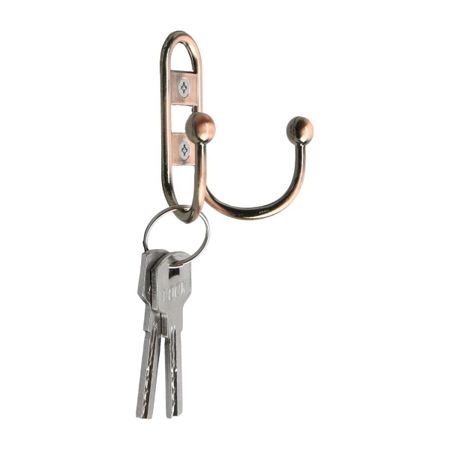 Крючок мебельный ТУНДРА TKd=017, двухрожковый, медь. Металлический двухрожковый крючок поможет вам организовать порядок в доме. Данная фурнитура предназначена для хранения одежды, аксессуаров и других вещей.