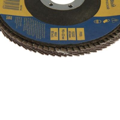 Круг лепестковый торцевой конический ТУНДРА, 115×22 мм, Р100. Используйте круг ТУНДРА вместе с углошлифовальными инструментами. Изделие подходит для очистки металла от краски и ржавчины. Коническая форма обеспечивает максимальную площадь соприкосновения с обрабатываемой поверхностью. <b> Особенности</b> <ul> <li> Подложка из стекловолокна.</li> <li> Шлифовальные прямоугольные элементы размещены в виде веера.</li> <li> Подходит для работы по дереву, металлу и другим материалам.</li> </ul>