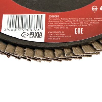 Круг лепестковый торцевой ЛОМ, 125×22 мм, Р80. Круг лепестковый торцевой ЛОМ изготовлен из прямоугольных элементов шлифовальной шкурки на тканевой основе, которые расположены в виде веера на подложке из стекловолокна. Применяется в шлифовальных работах по дереву, пластмассе, металлу, и другим материалам.