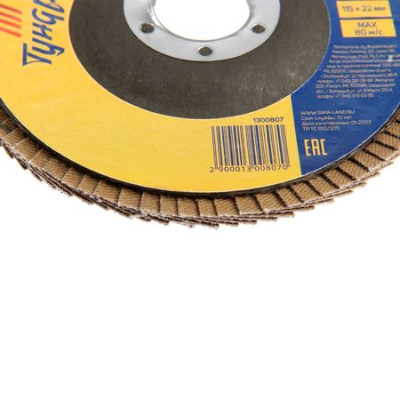 Круг лепестковый торцевой ТУНДРА, 115×22 мм, Р120. Круг лепестковый торцевой ТУНДРА изготовлен из прямоугольных элементов шлифовальной шкурки на тканевой основе, которые расположены в виде веера на подложке из стекловолокна. Применяется в шлифовальных работах по дереву, металлу, и другим материалам. <b> Характеристики</b> <ul> <li> Зернистость: Р120. </li> <li> Наружный диаметр: 115 мм. </li> <li> Посадочный диаметр: 22 мм. </li> </ul>