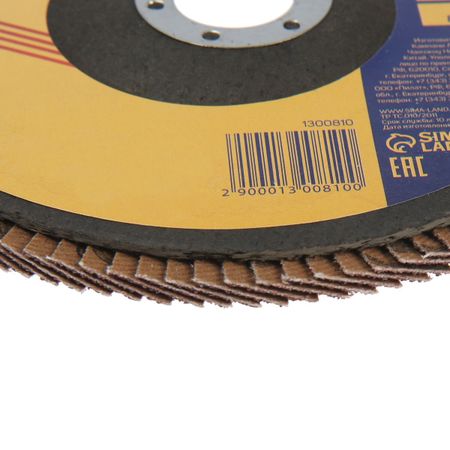 Круг лепестковый торцевой ТУНДРА, 150×22 мм, Р80. Круг лепестковый торцевой ТУНДРА изготовлен из прямоугольных элементов шлифовальной шкурки на тканевой основе, которые расположены в виде веера на подложке из стекловолокна. Применяется в шлифовальных работах по дереву, металлу, и другим материалам. <b> Характеристики</b> <ul> <li> Зернистость: Р80. </li> <li> Наружный диаметр: 150 мм. </li> <li> Посадочный диаметр: 22 мм. </li> </ul>