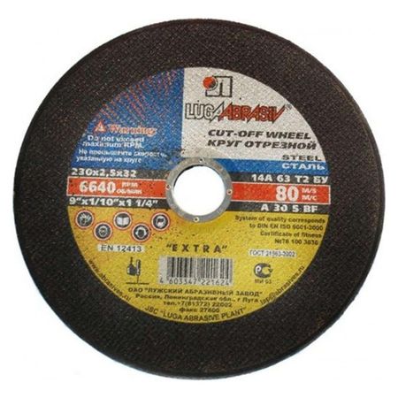 Главная » Строительство и ремонт круг отрезной по металлу LUGA 230х2,5х32мм Просмотров 13 Назначение: по металлу Диаметр диска: 230 мм Посадочный диметр: 32 мм Толщина: 2,5 мм LUGA ABRASIVE