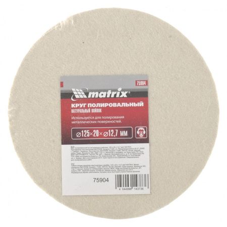Главная » Строительство и ремонт круг полировальный MATRIX войлочный для точила 125х12,7мм Просмотров 16 Диаметр круга: 125 мм Посадочный диаметр: 12,7 мм Высота круга: 20 мм Материал: войлок MATRIX