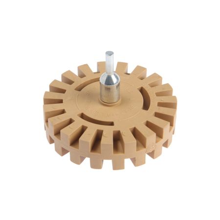 Круг шлифовальный резиновый ТУНДРА, для очистки от клея, ценников, скотча, 25×6 мм. Круг шлифовальный резиновый ТУНДРА предназначен для работ с угловой шлифовальной машиной. Благодаря резиновой составляющей инструмент подходит для отчистки поверхностей от остатков клеевого слоя.