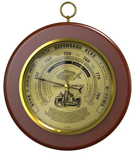 Круглый настенный барометр RST 05536 изготавливается в деревянном корпусе, а дизайн разработан специально для рыбаков. На панели предусмотрена стрелка для атмосферного давления и указывает, какие сейчас погодные условия для ловли рыбы. В основе данной модели — собранный вручную высокоточный механизм барометра-анероида. Модель станет прекрасным подарком для рыбака.