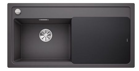 большая разделочная доска из черного безопасного стекла, отводная арматура InFino® с клапаном-автоматом 3 ½“.