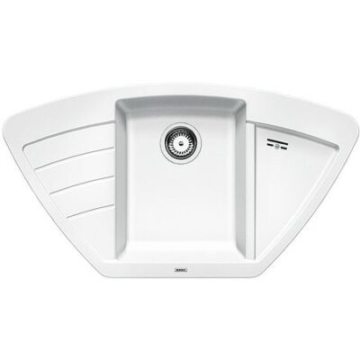 Кухонная мойка Blanco Zia 9 E 514758 выполнена в современном дизайне с преобладанием прямых линий. По периметру она обрамлена тонким кантом и имеет два функциональных крыла: одно с канавками для стока воды, второе с интегрированным слив-переливом. Мойка отлично впишется в интерьер любой кухни, подойдет для установки как в угловой, так и в обычный шкаф.