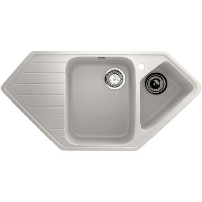 Большая угловая мойка с боковым крылом и объемной дополнительной чашей. Модель имеет строгую современную геометрию. Функциональное сочетание большого бокового крыла и коландера, что позволит Вам одновременно мыть посуду, размораживать мясо, а также сушить посуду или фрукты с овощами, например.