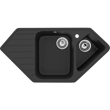 Большая угловая мойка с боковым крылом и объемной дополнительной чашей. Модель имеет строгую современную геометрию. Функциональное сочетание большого бокового крыла и коландера, что позволит Вам одновременно мыть посуду, размораживать мясо, а также сушить посуду или фрукты с овощами, например.