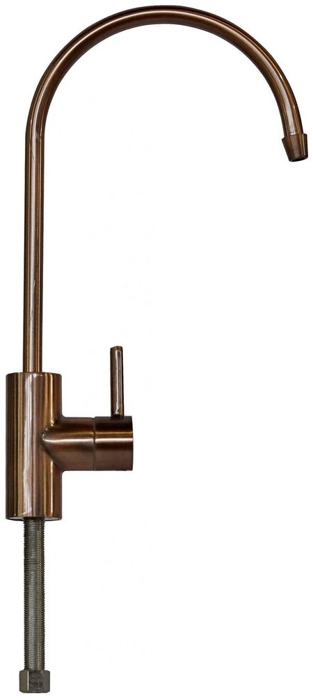 Кран для питьевой воды используется с трехступенчатыми фильтрами и обратным осмосом с одним типом очищенной воды.Материал: латуньПокрытие: хромЦвет: античная латуньПодача воды осуществляется при повороте ручки вверх-вниз (0 — 90), при этом ручка фиксируется в любом положении, что даёт возможность регулировать напор воды; излив вращается на 360.