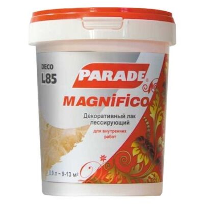 Главная » Строительство и ремонт лак декоративный PARADE Deco magnifico жемчуг 0,9л, арт.0005761 Просмотров 15 DECO Magnifico L85 Жемчуг 0,9л При внутренних работах для придания поверхностям эффекта перламутр или металлик PARADE