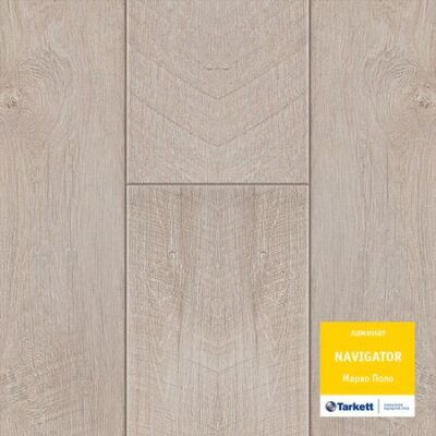 Ламинат Tarkett Navigator Mарко Поло. Размер панели: 1292х194х12 мм. Порода дерева: дуб. Фаска с 4-х сторон. Тип рисунка: однополосный. Соединение: замковое. Поверхность: матовая. Класс износостойкости: 33. Влагостойкость: да. В упаковке шт.: 5. В упаковке 1,253 кв.м.