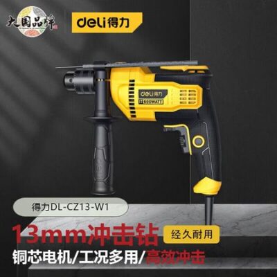 Легкая ударная дрель Deli, ручная электрическая дрель для бетона с регулируемой скоростью и многофункциональной ударной дрелью мощностью 600 Вт DL-CZ13-W1