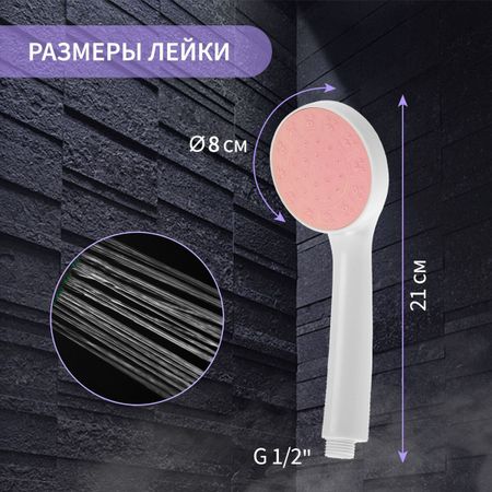Лейка для душа ZEIN Z0209, 1 режим, пластик, белая, с, розовая, вставка. Душевая лейка ZEIN Z0209 выполнена из прочного пластика и представлена в элегантном белом цвете с нежной розовой вставкой. Этот стильный и современный дизайн придает лейке привлекательный вид, который отлично впишется в интерьер ванной комнаты. Оснащенная одним режимом подачи воды, лейка обеспечивает простоту использования и комфорт во время принятия душа. Розовая вставка добавляет яркий акцент и создает уютную атмосферу. Лейка ZEIN сочетает в себе функциональность и эстетичность, делая ее отличным выбором для тех, кто ценит стиль и удобство.