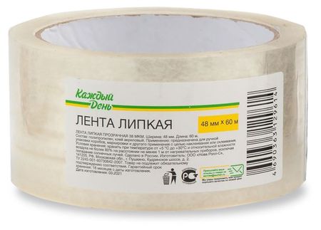 Лента клейкая Каждый день прозрачная, 48 мм x 60 м