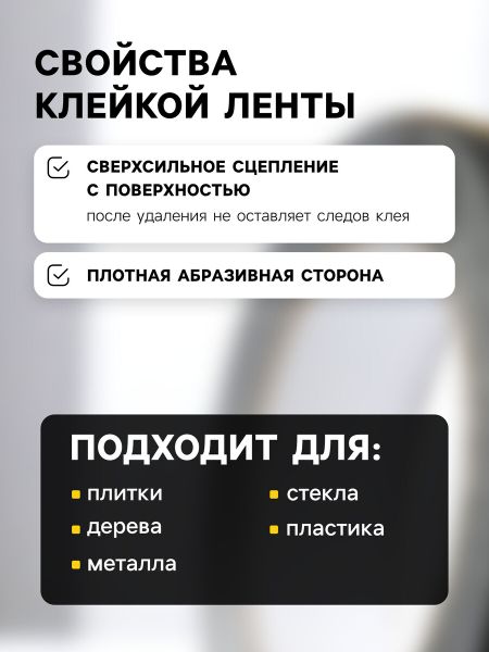 Лента клейкая ТУНДРА, противоскользящая, черная, 25 мм × 5 м. Противоскользящая клейкая лента ТУНДРА — предназначена для защиты от скольжения. Благодаря высокой адгезии, лента может применяться на различных поверхностях, как внутри помещения, так и на улице. Используется в зонах входа, выхода, переходах, лестницах, подъемах, в складских и производственных помещениях, рампах машин, на кафельных и мраморных полах, входных группах, ступенях лестниц и т.п. Лента обеспечивает безопасность перемещения за счет предотвращения скольжения и падения. Быстрый, простой и чистый монтаж, не требует особых навыков. <b> Преимущества противоскользящей ленты:</b> <ul> <li> Не требует сверления;</li> <li> Поверхность сохраняет свои качества во время дождя и при низких температурах;</li> <li> Легко удаляется;</li> <li> Не оставляет следов.</li> </ul> <b> Способ применения:</b> Монтаж производится на чистую, сухую поверхность, при температуре выше +12°С. Готова к использованию сразу после монтажа, нагрузка после 6-8 часов. Максимальная прочность клеевого слоя достигается в течении 72 часов в зависимости от температуры и влажности.
