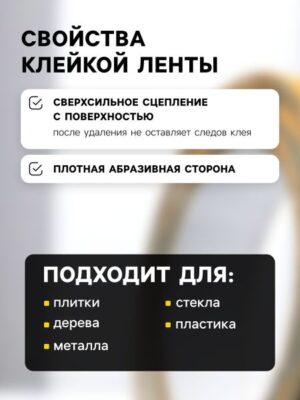 Лента клейкая ТУНДРА, противоскользящая, черно-желтая, 25 мм × 5 м. Противоскользящая клейкая лента ТУНДРА — предназначена для защиты от скольжения. Благодаря высокой адгезии, лента может применяться на различных поверхностях, как внутри помещения, так и на улице. Используется в зонах входа, выхода, переходах, лестницах, подъемах, в складских и производственных помещениях, рампах машин, на кафельных и мраморных полах, входных группах, ступенях лестниц и т.п. Лента обеспечивает безопасность перемещения за счет предотвращения скольжения, падения и цветового предупреждения об опасности. Быстрый, простой и чистый монтаж, не требует особых навыков. <b> Преимущества противоскользящей ленты:</b> <ul> <li> Не требует сверления;</li> <li> Поверхность сохраняет свои качества во время дождя и при низких температурах;</li> <li> Легко удаляется;</li> <li> Не оставляет следов.</li> </ul> <b> Способ применения:</b> Монтаж производится на чистую, сухую поверхность, при температуре выше +12°С. Готова к использованию сразу после монтажа, нагрузка после 6-8 часов. Максимальная прочность клеевого слоя достигается в течении 72 часов в зависимости от температуры и влажности.