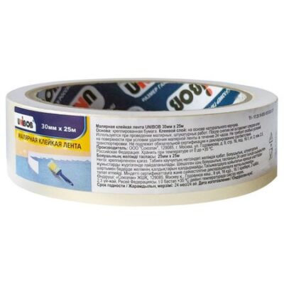 Главная » Строительство и ремонт лента малярная 30ммх25м белая, арт.55773 Просмотров 9 Размер: 30мм х 25м Цвет: белый для малярных и штукатурных работ временной герметизации швов на основе синтетического каучука Не указана