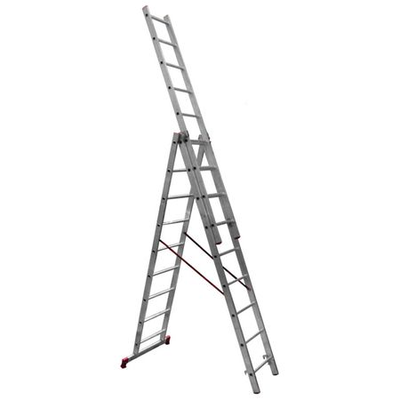 Главная » Строительство и ремонт лестница трехсекционная Новая Высота 3×9 100 серия Просмотров 8 Трехсекционная 3х9 Материал: алюминий Количество ступеней: 9 Длина/ширина: 2,40м/0,32м Рабочая высота: 6,07 м Грузоподъемность: 150 кг Вес: 10,9 кг. НОВАЯ ВЫСОТА