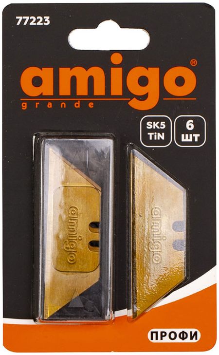 Набор лезвий AMIGO 77223 предназначен для строительного ножа. Лезвия выполнены из стали SK5 c покрытием TiN. Поставляются в пластиковом боксе для безопасного хранения.Характеристики:Форма: трапециевидноеШирина, мм: 18Длина, мм: 125Количество, шт: 6