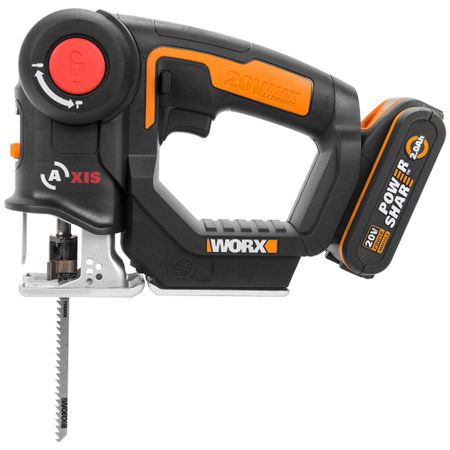 Компактный и легкий корпус WORX WX550 совместил в себе сразу 2 инструмента: лобзик и сабельную пилу. Комбинированное устройство позволит решать множество задач, сэкономит место для хранения и средства при покупке! Для того, чтобы выполнить переключение между лобзиком и сабельной пилой, достаточно просто нажать одну кнопку и поменять оснастку. При смене пильного полотна вам не придется тратить лишнее время и использовать дополнительный инструмент. Уникальная запатентованная технология Axis обеспечивает надежную блокировку положения и исключает переключение режима в ходе работы. WORX WX550 имеет регулируемую металлическую подошву и 2 ступени маятникового хода для быстрого и точного распила. В комплект поставки инструмента уже входят 4 пильных полотна, которые подойдут для работы с большинством популярных материалов. Для безопасной эксплуатации, в WX550 предусмотрен предохранитель от случайного запуска. Рукоятка с резиновым покрытием обеспечивает надежный захват инструмента, а светодиодная подсветка рабочей зоны позволяет комфортно работать даже в условиях ограниченной видимости. Лобзик оснащен мощным и малошумным щеточным двигателем, работающим от универсального аккумулятора WORX Powershare 20В, укомплектованного электронной платой защиты от перегрева и глубокого разряда. Скорость холостого хода лезвия составляет 3000 ходов в минуту. В режиме лобзика, максимальная глубина распила дерева составляет 50мм, для металла – 4мм. При использовании режима сабельной пилы глубина реза увеличивается до 100мм для дерева и до 76мм для металла.
