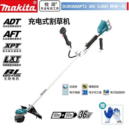 Makita аккумуляторная газонокосилка с литиевой батареей U-образная ручка 36В 5.0Ач два аккумулятора и одно зарядное устройство DUR368APT2
